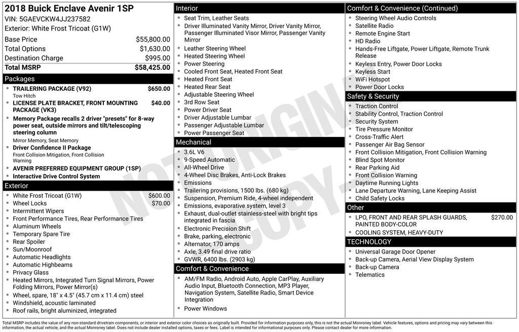 2018 Buick Enclave Avenir 3.6L V6 SIDI VVT 17/25 City/Highway MPG AWD AWD.