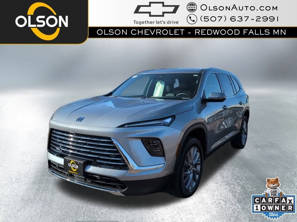 Olson Chevrolet is Family owned and operated In Redwood Falls and Hutchinson. Our business actively participates in the community through Community Events and Sponsorships. We enjoy Collaborating with and supporting local businesses.This stunning 2025 Buick Enclave Preferred is a true standout in the luxury SUV segment. With its sleek Moonstone Gray Metallic exterior and premium features, this Enclave is the perfect blend of style, comfort, and capability.• AWD• Heated seats• Heated steering wheel• 3rd row seats• Bluetooth®• Back up camera• Android auto & Apple carplay• Dual zone climate control• Remote start• Forward collision alert• Adaptive cruise control• Lane keep assist• Side blind zone alert• Keyless start• Power tailgate• 20 Inch wheels• Bose Premium 12-Speaker Audio SystemUnder the hood, this Enclave is powered by a robust 2.5L DOHC engine mated to an 8-speed automatic transmission, delivering a smooth and efficient driving experience. With its impressive fuel economy ratings of 19 MPG in the city and 24 MPG on the highway, this SUV is as practical as it is luxurious.Step inside and you'll be greeted by a spacious and well-appointed cabin that offers seating for up to 7 passengers. The Preferred trim level comes loaded with a wealth of premium features, including heated front seats, a heated steering wheel, and a Bose premium audio system that will elevate your every drive.Safety is also a top priority, with advanced driver assistance technologies like forward collision alert, adaptive cruise control, and lane keep assist keeping you and your loved ones secure on the road.With its clean accident-free history and single previous owner, this 2025 Buick Enclave Preferred is a true gem. Don't miss your chance to experience the perfect blend of luxury, capability, and technology. Visit our showroom today and let us put you behind the wheel of this exceptional SUV.Olson Chevrolet is Family owned and operated In Redwood Falls and Hutchinson. Our business actively participates in the community through Community Events and Sponsorships. We enjoy Collaborating with and supporting local businesses.