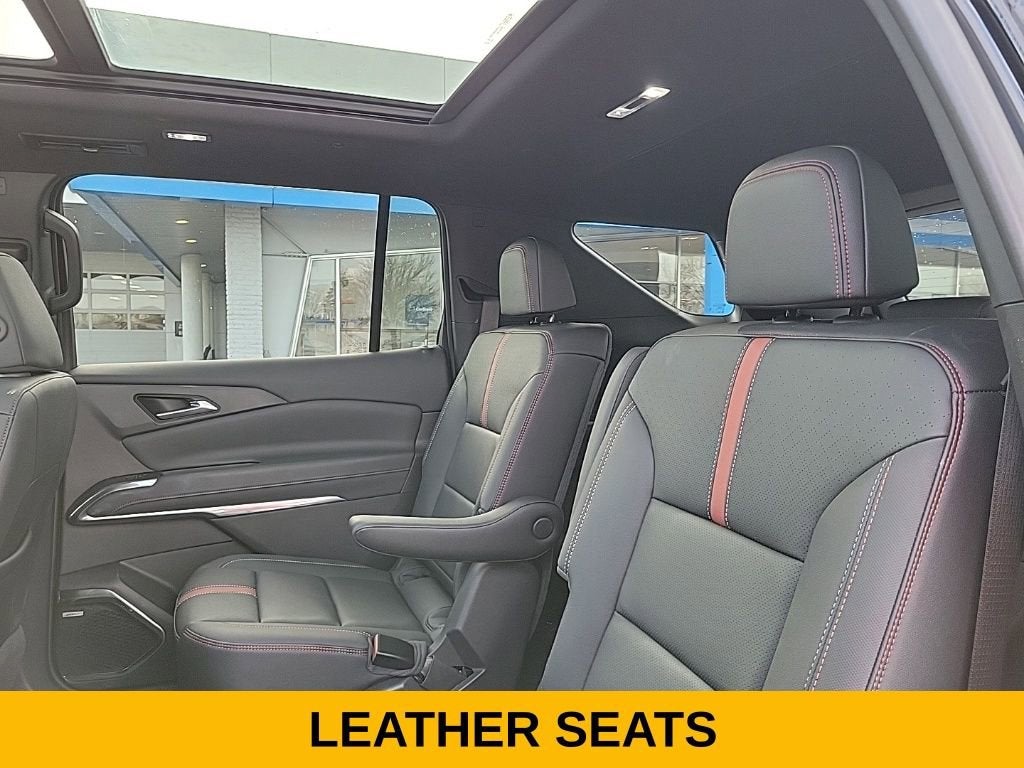 New Price! 2025 Chevrolet Traverse RS 2.5L DOHC 19/24 City/Highway MPG AWD CLEAN ACCIDENT FREE VEHICLE HISTORY REPORT, 1 OWNER, FORWARD COLLISION ALERT, SIDE BLIND ZONE ALERT, KEYLESS START, ADAPTIVE CRUISE CONTROL, LANE KEEP ASSIST, 3'RD ROW SEAT, AWD, BACK UP CAMERA, Bluetooth®, COOLED SEATS, HEATED SEATS, LEATHER SEATS, POWER TAILGATE, REMOTE START, TOW PACKAGE, AWD, 12 Speakers, Bose Premium 12-Speaker Audio System Feature, Heated rear seats, Navigation System, Perforated Leather-Appointed Seat Trim, Power passenger seat, Preferred Equipment Group 2RS, Radio: : Audio System w/17.7 Diagonal Display, SiriusXM with 360L Trial Subscription, Ventilated front seats, Wheels: 22 High Gloss Black Painted Aluminum.