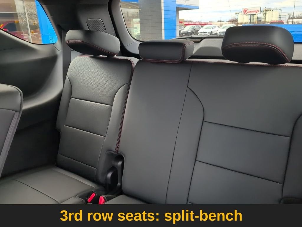 2025 Chevrolet Traverse RS 2.5L DOHC 19/24 City/Highway MPG AWD AWD, 1st and 2nd Row All-Weather Floor Mats, 3rd Row All-Weather Floor Liner, 3rd row seats: split-bench, 6-Way Power Front Passenger Seat Adjuster, 8-Way Power Driver Seat Adjuster, Apple CarPlay/Android Auto, Auto High-beam Headlights, Automatic temperature control, Bose Premium 12-Speaker Audio System Feature, Exterior Parking Camera Rear, Heated front seats, Heated rear seats, Heated steering wheel, Interior Protection Package, Memory seat, Navigation System, Perforated Leather-Appointed Seat Trim, Power Liftgate, Power passenger seat, Preferred Equipment Group 2RS, Radio: : Audio System w/17.7 Diagonal Display, Rear air conditioning, SiriusXM with 360L Trial Subscription, Ventilated front seats, Wheels: 22 High Gloss Black Painted Aluminum.